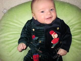 And finally, after a quick massage and being put into his pajamas, we fed him, and rocked and sang him to sleep. You can sing to him whatever, and he'll sleepily listen, and then you switch to 'Hush Little Baby' and his eyes will close and he'll fall asleep.